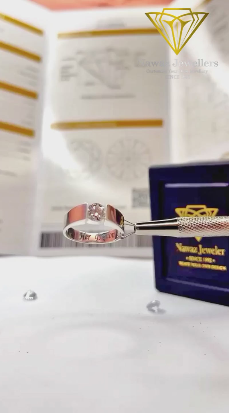 Round shape Moissanite Diamond of 1 Carat in Men's ring. - Round shape Moissanite Diamond of 1 Carat in Women's ring.
